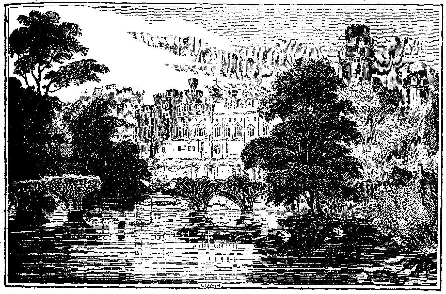 The town of Warwick is delightfully situated on the banks of the river Avon, nearly in the centre of the county to which it has given its name, and of which it is the principal town. Much diversity of opinion exists among antiquaries, as to whether it be of Roman or Saxon origin; but it is the opinion of Rous, as well as that of the learned Dugdale,1 that its foundation is as remote as the earliest period of the Christian era. These authors attribute its erection to Gutheline, or Kimbeline, a British king, who called it after his own name, Caer-Guthleon, a compound of the British word Caer, (civitas,) and Gutieon, or Gutheline, which afterwards, for the sake of brevity, was usually denominated Caerleon. We are also informed that Guiderius, the son and successor of Kimbeline, greatly extended it, granting thereto numerous privileges and immunities; but being afterwards almost totally destroyed by the incursions of the Picts and Scots, it lay in a ruinous condition until it was rebuilt by the renowned Caractacus. This town afterwards greatly suffered from the ravages of the Danish invaders; but was again repaired by the lady Ethelfleda, the daughter of King Alfred, to whom it had been given, together with the kingdom of Mercia, of which it was the capital, by her father. Camden,2 with whose opinion several other antiquaries also concur, supposes that Warwick was the ancient Præsidium of the Romans, and the post where the præfect of the [pg 114] Dalmatian horse was stationed by the governor of Britain, as mentioned in the Notitia.