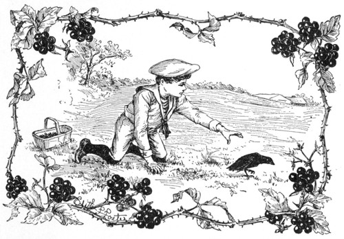 O ne day, last[Pg 13] summer, Jack was picking low berries in the pasture, when he saw a young crow hopping in the bushes. The little crow was lame in one leg. He had fallen from the nest. He was too young to fly far, so Jack caught him. He carried him home in his berry-basket. Then Jack took a hammer and nails and wood and built a cage. He named his new pet "Jimmy Crow."[Pg 14]