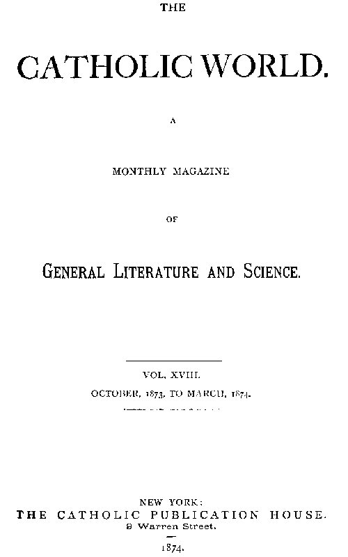 Title: The Catholic World, Volume 18, October, 1873, to March, 1874.