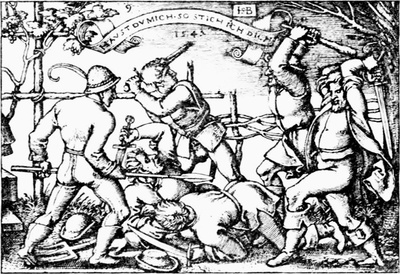Kupferstiche u. Radierungen: Albr. Glockendon: B. 26. — Israel van Meckenem: B. 113 (St. Ambrosius und St. Augustinus). B. 152, Med. b. — Martin Schongauer: B. 49, 62, 67, 68. — Anonymer Meister, 1521: Landsknecht und Fahnenjunker B. X, 148. Nr. 13. Anonymer Meister (Schule des Meisters S): Der Schmerzensmann bis zum halben Körper im Grabe stehend, um ihn die Marterwerkzeuge, zur Rechten ein Bischof, zur Linken ein Abt. — Daniel Hopfer: B. 19, 38, 42, 98, 104, 106, 108. — Hieronymus Hopfer: B. 48, 50. — Lambert Hopfer: B. 29. — Heinrich Aldegrever: B. 139, 140, 260. — Franz Brun: B. 22, 47, 91, 97, 102, Pass. 114, Jagd auf Wasservögel. — Augustin Hirschvogel: Joseph in der Grube. Aus der Folge B. 1. (1549); B. 73. Deutscher Kleinmeister des 16. Jahrhunderts: Die sieben freien Künste. — Hans Sebald Lautensack: B. 32. — Nikolaus Solis: Andr. 5. — Virgil Solis: B. 20. Die Astrologie; aus der Folge B. 190–196. Ceres; unbeschr. Astrologia; unbeschr. Ein Fahnenträger; unbeschr. Ein Fechter mit der Lanze; unbeschr. Bärtiger Krieger in reichem Federhut, zu Pferde nach rechts sprengend; unbeschr. — Matthias Zündt: Andr. 41. — Jost Amman: Andr. 15, 76, 85, 87. — Balth. Jenichen: Andr. 45, 49, 64, 67. — Peter Weinher: Andr. 11. — Paul Flindt: Ornament mit dem nackten Krieger mit Helm in Rückenansicht; Ornament mit der Krone und den Engelsköpfchen. — Unbekannter Meister: Stammbuchblatt: Wappen der Familie Ragslaff in Pommern. Ende des 16. Jahrh. — Matthäus Merian: Folge von 15 Blrn. Grotesken. 1616. — Jeremias Falck: Brustbildnis des Daniel Dilger. 1648. — Wenzel Hollar: Parthey 161, 165, 269, 279, 610–613, 840, 1238, 1580, 1615, 1617. — G. A. Wolfgang: Sechs Gebirgslandschaften mit Staffage. 1664. — Joh. Benßheimer: Wappen des Valentin von Winter. 1672. — Jonas Umbach: Der barmherzige Samariter; Susanna. — — Christian Wilhelm Ernst Dietrich: Lincke 77, 138, 146, 163. — Joh. Elias Nilson: Der Baurentanz; das Singen; Vesper. — Friedrich Christian Klass: Zwei Landschaften mit Staffage. 1775. — Salomon Kleiner: Gedenkblatt auf die Geburt eines Prinzen. 1741. — Carl Schütz: Ehrenpforte für Kaiser Leopold II. in Wien. Nach Melchior Hefele. 1790. — C. Stark: 14 Landschaften mit Staffage. 1809–1810.