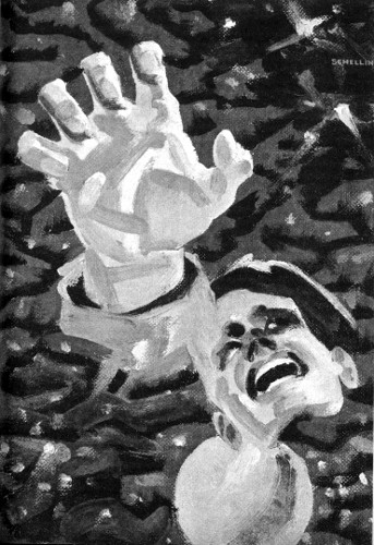 A part of my mind watched as the memory unreeled. I listened to the voices—yet not voices, merely the shape of concepts, indescribably intricate. I saw how the decoy pseudo-personality which I had concretized for the purpose in a hundred training sessions had fought against the intruding stimuli—then yielded under the relentless thrust of the alien probe. I watched as the Gool operator took over the motor centers, caused me to crawl through the choking smoke of the devastated control compartment toward the escape hatch. Fire leaped up, blocking the way. I went on, felt ghostly flames whipping at me—and then the hatch was open and I pulled myself through, forcing the broken leg. My blackened hand fumbled at the locking wheel. Then the blast as the lifeboat leaped clear of the disintegrating dreadnought—and the world-ending impact as I fell.