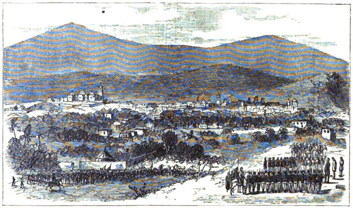 | CHAPTER III. | The American Invasion of To-day.—Monterey as a Health Resort; its Site and Surroundings.—The Cathedral and other Public Buildings.—Capture of Monterey by General Taylor.—Short History of the Mexican War.—From Corpus Christi to Monterey.—The Attack on the City.—Capture of the Forts and the Bishop's Palace.—Frank Recites a Poem.—Lieut. U. S. Grant and What he Did at Monterey.—A Story about Jefferson Davis.—How John Phenix Escaped Cashiering.—Sights of the City.—The Market-place and What was Seen There.—Fruits, Birds, Pottery, etc.—In a Monterey House.—A Palatial Residence. |