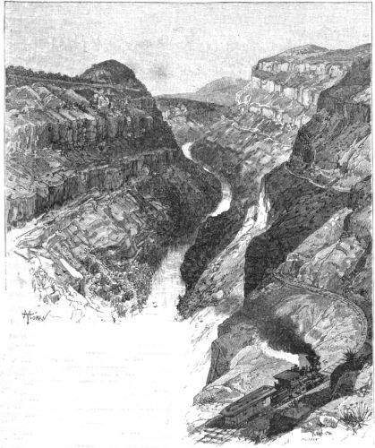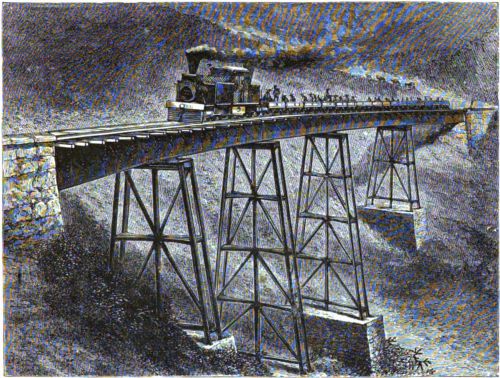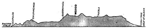 "The first railway which was opened from the United States to the City of Mexico was the Mexican Central, which runs from El Paso, Texas, or rather from Paso del Norte, Mexico, which is opposite to El Paso, on the other side of the Rio Grande. Its length is 1224 miles, and it was completed March 8, 1884, at the station of Fresnillo, 750 miles from Paso[Pg 6] del Norte, the line having been built from both ends at the same time. Three years and six months were required for its construction, and the line is said to have cost more than thirty-two millions of dollars; eight miles of track were laid during the last day of the work before the two ends of the line were brought together; and considering all the disadvantages of the enterprise, it reflects great credit upon those who managed it.