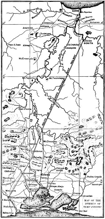 | CHAPTER XXVII. | The Coatzacoalcos River.—Isthmus of Tehuantepec.—Tehuantepec Railway and Ship-canal.—The Eads Ship-railway.—An Idea of Cortez.—Plans of Captain Eads.—A Railway-carriage with 1200 Wheels.—Ships Carried in Tanks.—Engineering and other Features of the Ship-railway.—Mahogany Trade.—Fifteen Thousand Dollars for Three Logs.—Frontera and Tabasco.—Ruins of Palenque.—Lorillard City.—Explorations by Stephens and Charnay.—Palace of Palenque.—Temple of the Cross.—Temple of Lorillard.—Remarkable Idol.—A Region Abounding in Ruins.—Remains of Mitla.—Pillar of Death. |